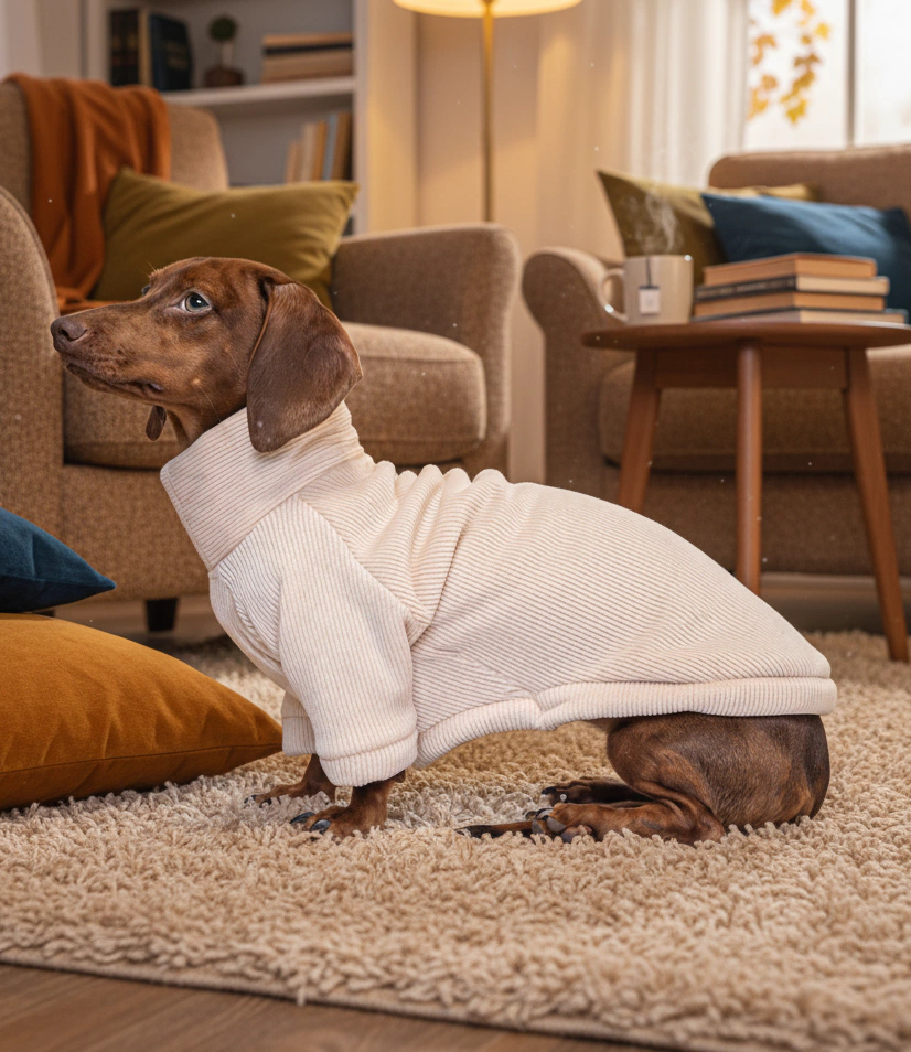 Feita para garantir conforto, estilo e liberdade de movimento, esta roupa pet em veludo foi desenvolvida com modelagem exclusiva Doxi, criada especialmente para raças de corpo comprido e peitoral mais largo, como Dachshunds (salsichinhas) e Galgos.