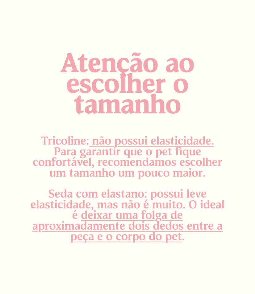 O Pijama Americano é uma peça premium desenvolvida com modelagem exclusiva para garantir conforto, elegância e caimento perfeito em cães de diferentes portes. Produzido em seda sintética com elastano, o tecido é leve, macio e resistente a puxar fio, mesmo em contato com unhas ou atrito constante. Além da sofisticação do brilho acetinado, a seda oferece benefícios especiais para cães de pelo longo, ajudando a manter os fios alinhados, reduzindo a formação de nós e mantendo a pelagem saudável durante o descanso.